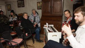Emma Engström och Simon Häger från Falköping stod för julmusiken och i trappan upp till andra våningen kunden man se det gamla fönstret trepassfönstret från Domkyrkan. Fönstret var en gåva till f.d. brandchefen och åldermannen David Bergman för sina insatser vid branden i Domkyrkan år 1947, fönstret har nu lämnats över till Skara Gille.. Enligt traditionerna läste dikten ”Tomten” skriven av Viktor Rydberg, detta är också en tradition sedan många år. Familjen Palm har levererat dikten under flera år och nu är Roger Palm som läser dikten.  Julmarknaden lockade både unga och gamla och nu känns det som om julen är ännu ett steg närmare då detta är den sista aktiviteten före jul för oss på Gillet.