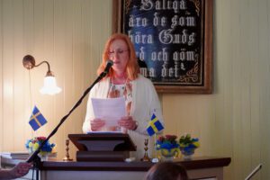 Annelie Holmgren, kommunfullmäktiges förste vice ordförande höll inledningstal. Foto Freddie Wendin